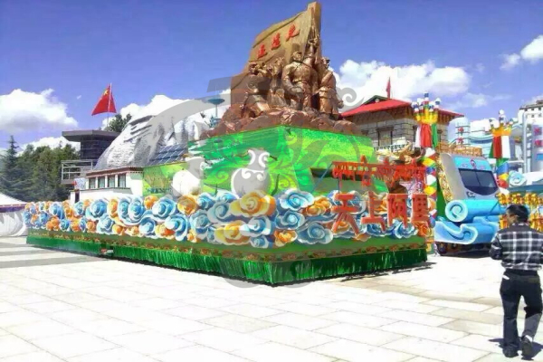 一、以綢布為主要裝飾材料的彩車,用絲骨架造型,其特點是制作工期短,造型豐富且價格較為便宜,這種工藝的彩車應用廣泛,尤其適合使用時間短暫的節慶活動。這種材質的彩車還有個顯著的特點就是透光性好,可以整體內透光,夜間使用美輪美奐。