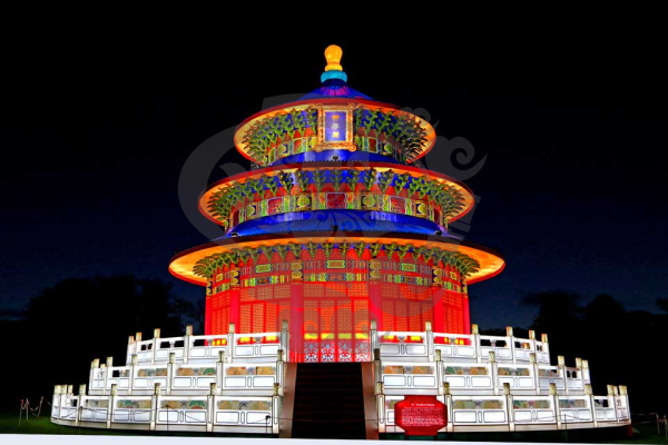 就是自貢燈會與自然環境的完美結合,它將璀璨奪目的燈布展于園林山水中,形成燈景交融、層次迷離的獨特風采。無論是精巧別致的工藝燈,還是宏偉壯觀的大型燈組,都布展于園林山水之中,湖光山色、亭臺水榭與燈融為一體,形成燈中有景、景中有燈,燈景交織的奇妙景觀。觀眾稱之為“燈的山,燈的樹,燈的水,燈的路”。波光水影、風簫聲動,燈景渾然一體,彩燈藝術的人工美與園林山水的自然美珠聯璧合,組成了瓊樓玉亭、層次迷離的美妙世界,展示了燈景渾然,千光萬彩的獨特風采!
