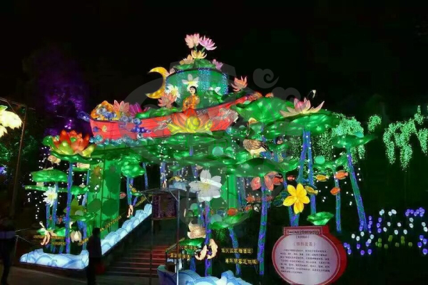 就是自貢燈會(huì)與自然環(huán)境的完美結(jié)合,它將璀璨奪目的燈布展于園林山水中,形成燈景交融、層次迷離的獨(dú)特風(fēng)采。無論是精巧別致的工藝燈,還是宏偉壯觀的大型燈組,都布展于園林山水之中,湖光山色、亭臺(tái)水榭與燈融為一體,形成燈中有景、景中有燈,燈景交織的奇妙景觀。觀眾稱之為“燈的山,燈的樹,燈的水,燈的路”。波光水影、風(fēng)簫聲動(dòng),燈景渾然一體,彩燈藝術(shù)的人工美與園林山水的自然美珠聯(lián)璧合,組成了瓊樓玉亭、層次迷離的美妙世界,展示了燈景渾然,千光萬彩的獨(dú)特風(fēng)采!