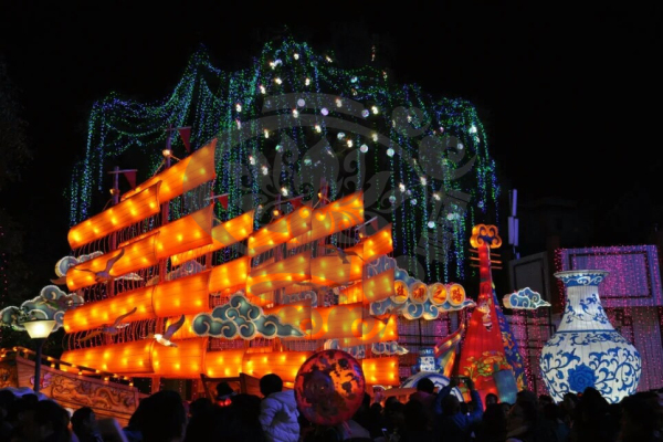 就是自貢燈會(huì)與自然環(huán)境的完美結(jié)合,它將璀璨奪目的燈布展于園林山水中,形成燈景交融、層次迷離的獨(dú)特風(fēng)采。無(wú)論是精巧別致的工藝燈,還是宏偉壯觀的大型燈組,都布展于園林山水之中,湖光山色、亭臺(tái)水榭與燈融為一體,形成燈中有景、景中有燈,燈景交織的奇妙景觀。觀眾稱之為“燈的山,燈的樹(shù),燈的水,燈的路”。波光水影、風(fēng)簫聲動(dòng),燈景渾然一體,彩燈藝術(shù)的人工美與園林山水的自然美珠聯(lián)璧合,組成了瓊樓玉亭、層次迷離的美妙世界,展示了燈景渾然,千光萬(wàn)彩的獨(dú)特風(fēng)采!