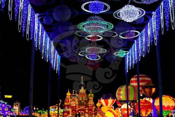 就是自貢燈會(huì)與自然環(huán)境的完美結(jié)合,它將璀璨奪目的燈布展于園林山水中,形成燈景交融、層次迷離的獨(dú)特風(fēng)采。無(wú)論是精巧別致的工藝燈,還是宏偉壯觀的大型燈組,都布展于園林山水之中,湖光山色、亭臺(tái)水榭與燈融為一體,形成燈中有景、景中有燈,燈景交織的奇妙景觀。觀眾稱之為“燈的山,燈的樹,燈的水,燈的路”。波光水影、風(fēng)簫聲動(dòng),燈景渾然一體,彩燈藝術(shù)的人工美與園林山水的自然美珠聯(lián)璧合,組成了瓊樓玉亭、層次迷離的美妙世界,展示了燈景渾然,千光萬(wàn)彩的獨(dú)特風(fēng)采!