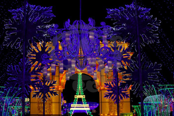 就是自貢燈會與自然環境的完美結合,它將璀璨奪目的燈布展于園林山水中,形成燈景交融、層次迷離的獨特風采。無論是精巧別致的工藝燈,還是宏偉壯觀的大型燈組,都布展于園林山水之中,湖光山色、亭臺水榭與燈融為一體,形成燈中有景、景中有燈,燈景交織的奇妙景觀。觀眾稱之為“燈的山,燈的樹,燈的水,燈的路”。波光水影、風簫聲動,燈景渾然一體,彩燈藝術的人工美與園林山水的自然美珠聯璧合,組成了瓊樓玉亭、層次迷離的美妙世界,展示了燈景渾然,千光萬彩的獨特風采!