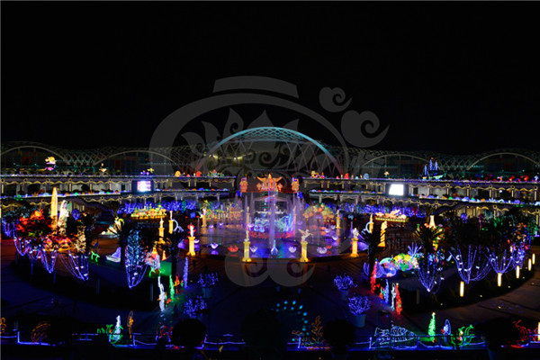 就是自貢燈會(huì)與自然環(huán)境的完美結(jié)合,它將璀璨奪目的燈布展于園林山水中,形成燈景交融、層次迷離的獨(dú)特風(fēng)采。無(wú)論是精巧別致的工藝燈,還是宏偉壯觀的大型燈組,都布展于園林山水之中,湖光山色、亭臺(tái)水榭與燈融為一體,形成燈中有景、景中有燈,燈景交織的奇妙景觀。觀眾稱之為“燈的山,燈的樹(shù),燈的水,燈的路”。波光水影、風(fēng)簫聲動(dòng),燈景渾然一體,彩燈藝術(shù)的人工美與園林山水的自然美珠聯(lián)璧合,組成了瓊樓玉亭、層次迷離的美妙世界,展示了燈景渾然,千光萬(wàn)彩的獨(dú)特風(fēng)采!