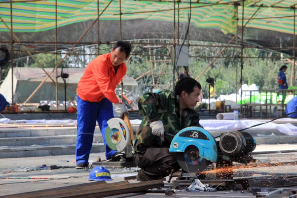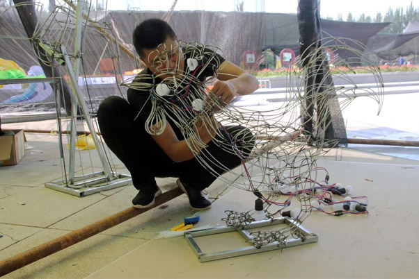 在這炎炎烈日中,我們的制燈藝人們正在加班制作,只為效果,只為如期。
