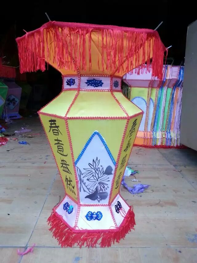 現(xiàn)代宮燈主要以鋼絲為骨架,塑料成型的上下座,和空心鐵桿為支撐,顏色絢麗的布料為主要原料手工制作完成。