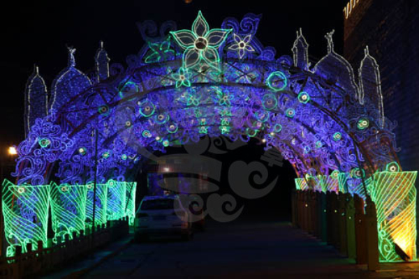 光雕燈是現代藝術彩燈造型的新形式。藝術彩燈利用玻璃、冰塊、透明塑料等透光材料制成各種造型和燈具,光線從內部或外部照射,通過投射光的透射、折射、反射等物理特性的充分發揮,構成光輝燦爛的各種色光的立體藝術。也有利用小型彩色燈泡、燈珠、霓虹燈、光導纖維等燈具材料,直接構成五彩繽紛的燈光圖案畫面。近幾年運用LED 燈帶制作的各種光雕彩燈也展現在燈會中。