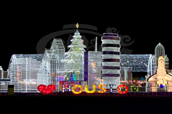 由光雕燈和音樂互相配合而創造的綜合藝術在現代藝術彩燈展示環境中十分搶眼,如利用燈光照明的明暗、色彩、強度,運用計算機控制燈光和音樂編制的程序,使音樂的節奏同步配合燈光的強弱和搖曳,從而獲得聲、光、色的綜合藝術效果,使整個彩燈展示環境顏色瞬息萬變,從而使觀賞者陶醉于一種快節奏夢幻般的超現實世界。 自貢恒卓科技制作的光雕彩燈燈會燈展燈組:采用鋼架結構、分色裱糊、內透光源、部分噴繪、美術處理。采用傳統