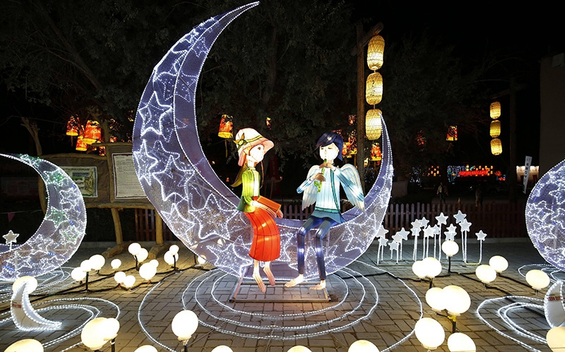 自貢燈會大師助陣敦煌月牙泉小鎮(zhèn)流光溢彩