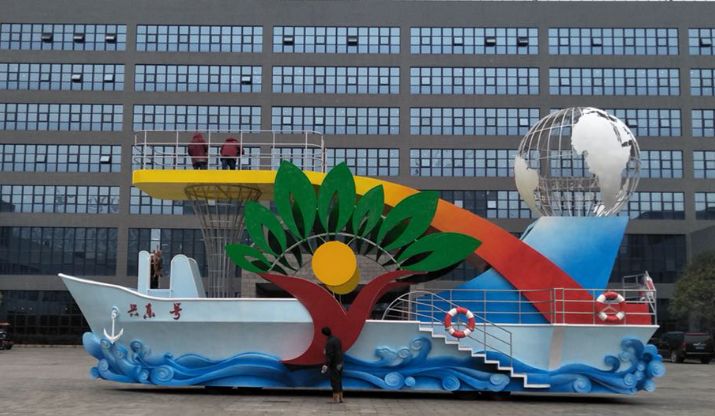《歡樂彩虹船》長15米高7米寬6米玻璃鋼彩繪花車。此花車展現出一片在小船上狂歡的氛圍,與們園區的游玩設施相照應,配合ip人偶演員熱情的互動,使游客感覺猶如與我們的演員一起在這條彩虹船上盡情的歡樂。