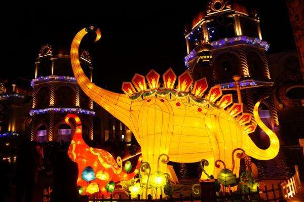 此次“魔幻中國(guó)彩燈節(jié)”的主題為野生動(dòng)物”。各種燈飾做成矯健的獵豹、跳躍的錦鯉魚(yú)以及巨大的水母和恐龍,把人們帶入一個(gè)燈光與色彩的魔幻世界。據(jù)介紹,彩燈節(jié)上每一個(gè)燈籠都出自中國(guó)
