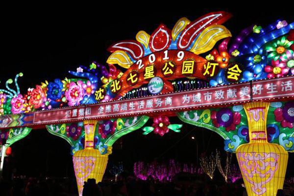 2019七星公園燈會,此次燈會占地37萬平方米,是沈陽市規模最大的燈會。分為“金豬賀歲、和諧幸福、花開盛世、放飛夢想”四個版塊,主要展出北派傳統花燈和現代燈光秀,共展出各類燈180余組,氣氛燈400余個。