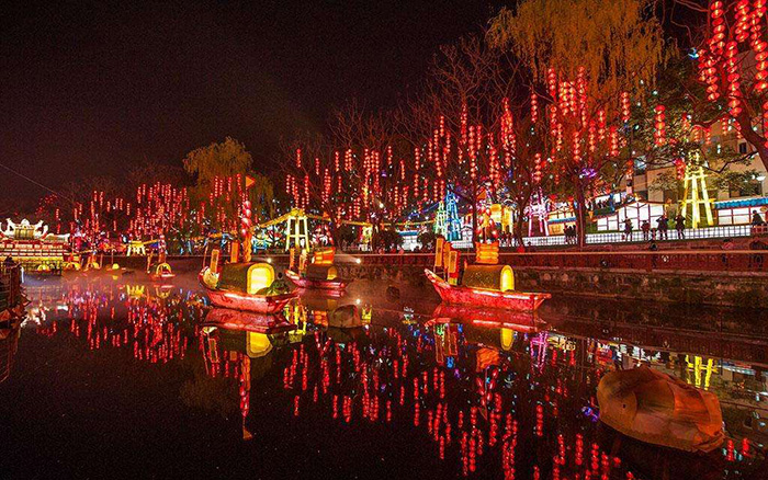 另外,在城區燈飾設計時,重點考慮了中國燈城的要素體現及常態化展示,主要設計了燈飾燈雕作品、光影水秀項目、樹掛小品及大紅燈籠陣。市住建局、市規劃局、市文廣新局聯合開展了“中國燈城燈光雕塑創意設計全國征集活動”,征集到包括北京、安徽、河南、重慶等地來稿40余件。